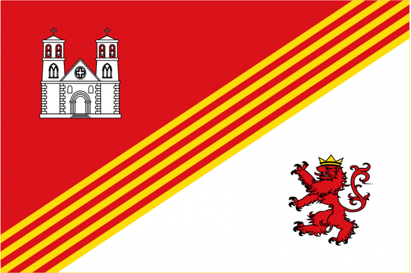 Comprar bandera municipal d´Olost. Bandera realitzada en teixit de polièster de 117 gr. Colors sòlids. Traspàs total del color. Doble costura amb fil especial per a exteriors. Cinta de reforç i anelles de subjecció metàl·liques. Llarga durada a l'exterior. Som fabricants. Comprar banderes de qualitat és més barat