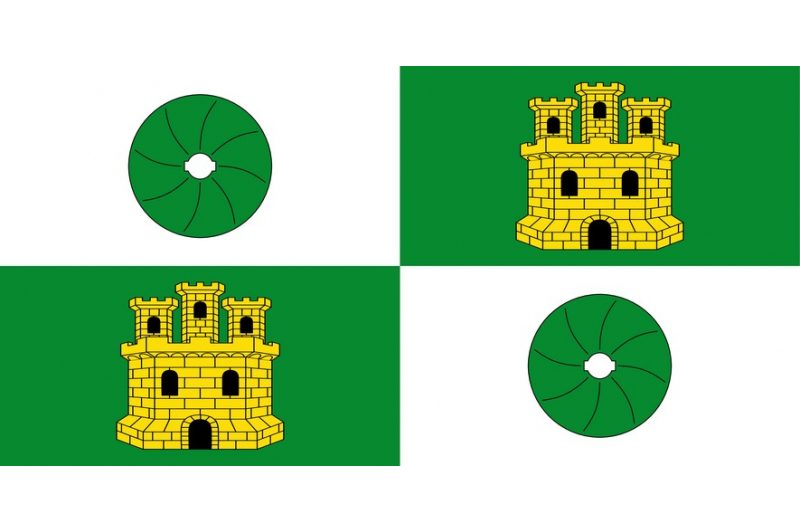 Buy Horcajo de Santiago municipal flag. Flag made on polyester fabric of 117 gr. Solid colors. Total transfer of color. Double stitching with special thread for exteriors. Reinforcement tape and metal fastening rings. Long lasting outdoors. We are manufacturers.
